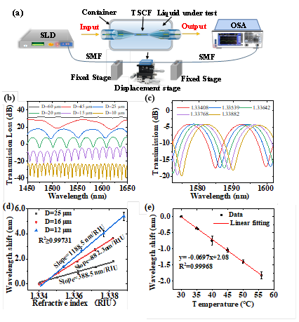 AKT蛋白是与癌症息息相关的一种蛋白,但目前的检测手段成本昂贵且检测极限较高、检测周期也较长,这使得AKT蛋白在临床上并不是普遍筛查的指标。因此,设计一种能够低成本且快速检测AKT蛋白的传感器对癌症筛查具有重要意义。研究团队提出了一种基于锥形七芯光纤(TSCF)的生化传感器,实现了对AKT蛋白的高灵敏度检测。实验结果表明,该传感器的检测极限低至0.26 ng/mL,且与传统的Western Blotting法相比,该TSCF生化传感器结构简单,具有更低的检测极限和更快的检测速度。